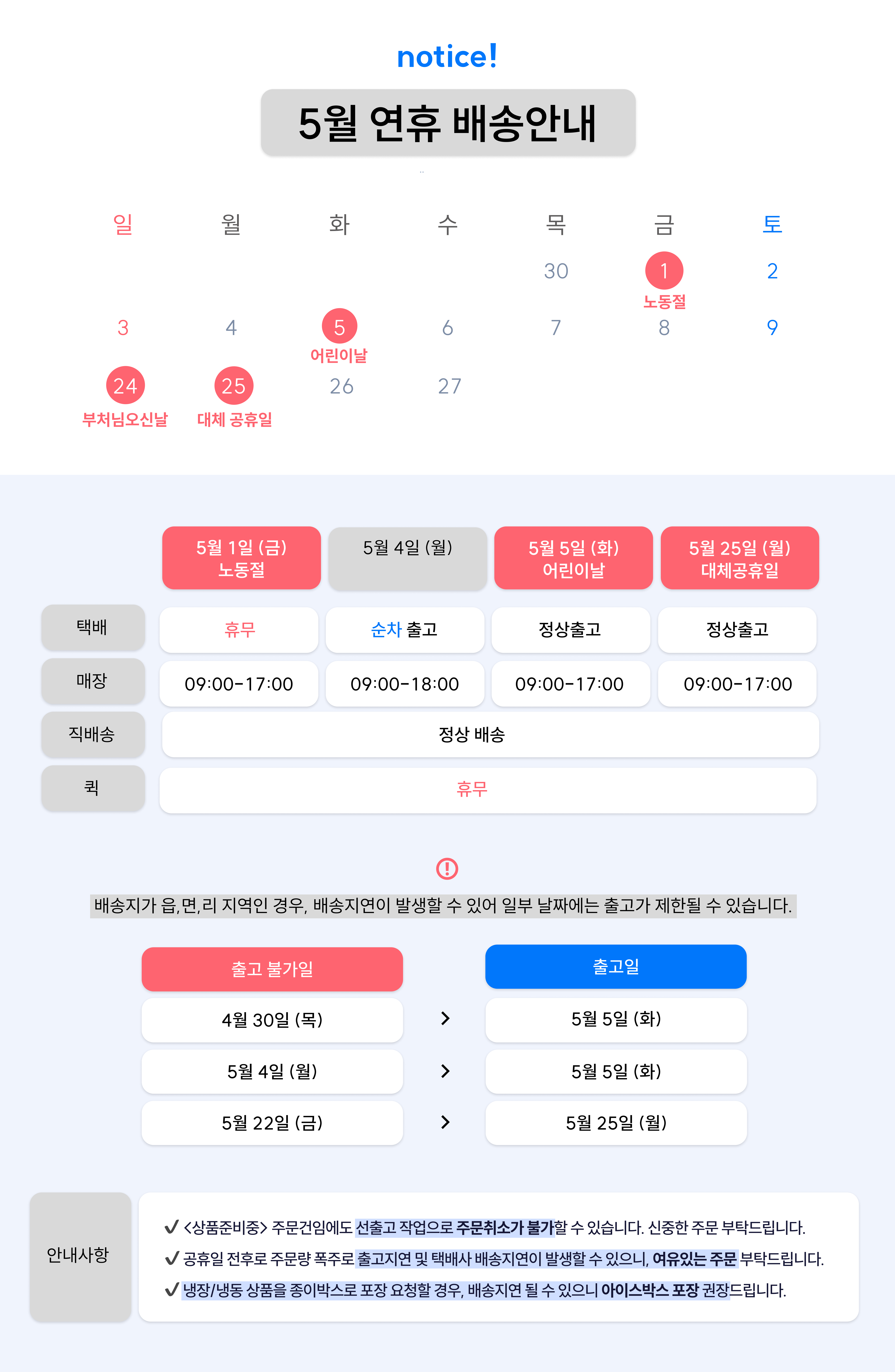 직배송/퀵 안내